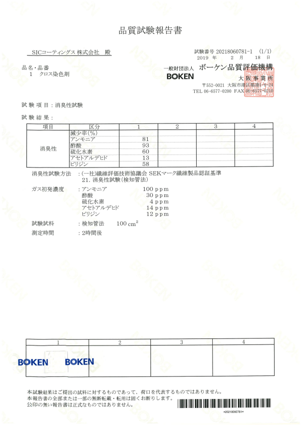 専用染料の各種検査報告書